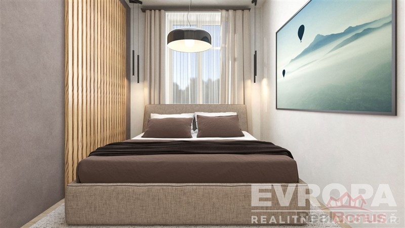 Vzdušný obývací prostor s kuchyní ložnice a koupelna se zádveřím vytvářejí pohodlí pro rodinu, pár i náročnější klienty.