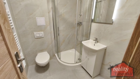 V obývacím pokoji s kuchyňským koutem je laminátová plovoucí podlaha, v koupelně keramická dlažba. V koupelně je sprchový kout, umyvadlo, toaleta a prostor na pračku s připravenými vývody na vodu a odpad. Provedení ve standardu, není potřeba dokončovacích prací. V bytě jsou plastová tříkomorová okna a bezpečnostní vstupní dveře, které jsou uvnitř foliované. Vchodové dveře do domu mají bezpečnostní zámek ovladatelný z mobilního telefonu.
