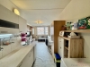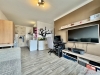 Z předsíně je vstup do všech místností bytu. Je vybavena věšákem, botníkem a velikou skříní s posuvnými dveřmi. Z předsíně vstoupíme do prosvětleného obývacího pokoje se sedací soupravou ve tvaru L. Naproti ní jsou skříňky a prostor pro televizi. Vlevo je pracovní kout s psacím stolem. Na obývací pokoj navazuje kuchyňský kout s kuchyňskou linkou se samostatnými spotřebiči, elektrickým sporákem se sklokeramickou deskou a horkovzdušnou troubou, lednicí s mrazákem a pračkou. Je zde také jídelní stůl.
