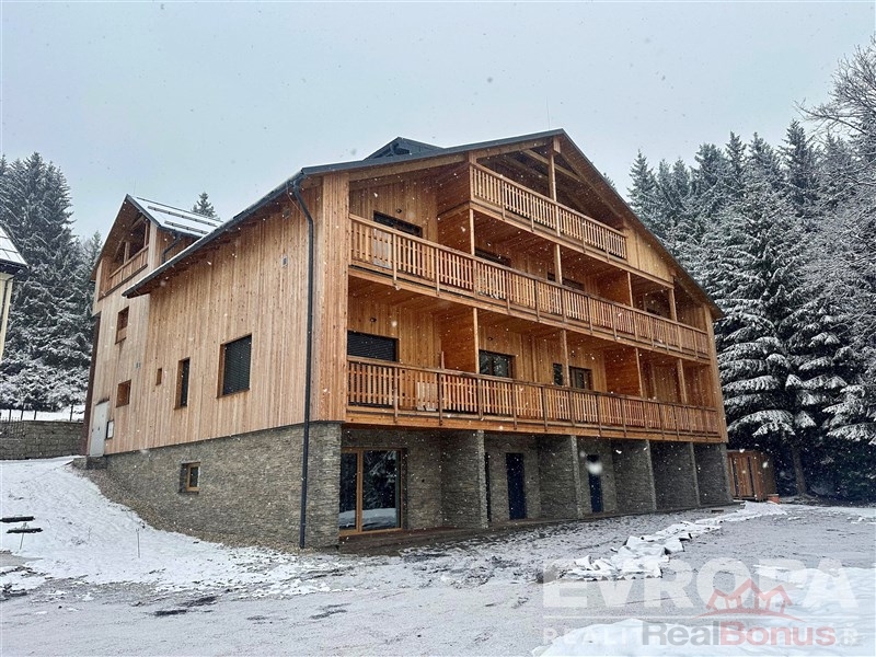 Nový horský apartmánový dům na úžasném místě s výhledem do údolí Špičáku. Výjimečná lokalita v čisté přírodě CHKO na Mariánské Hoře v Albrechticích v Jizerských horách nabízí byt 2+kk o velikosti 72 m s terasa 32.2m.