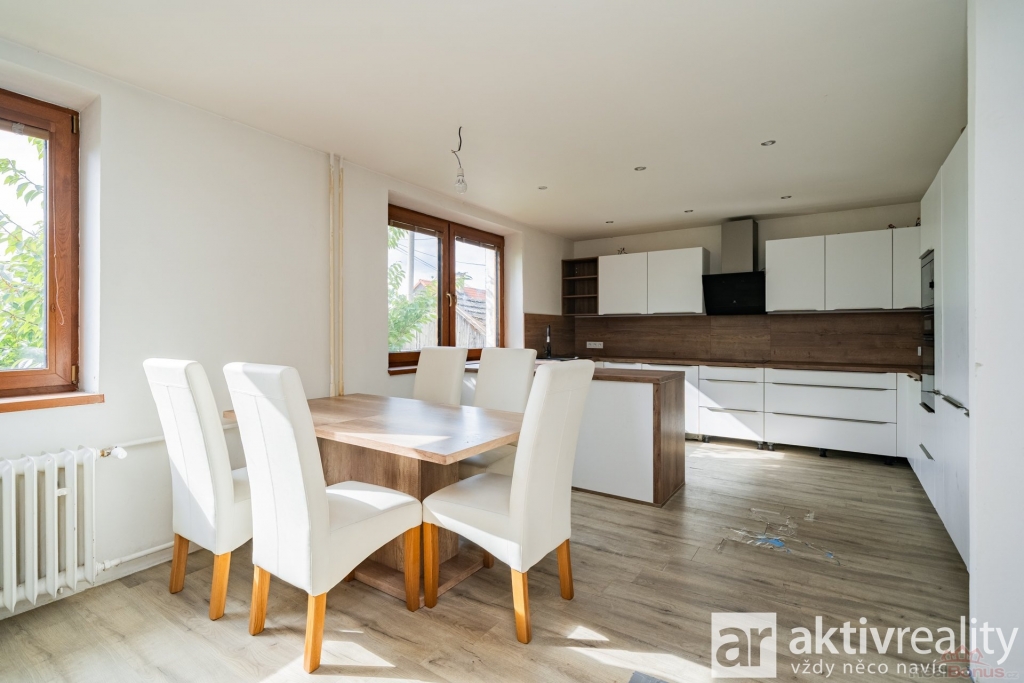 Prodej rodinného domu v klidné mělnické části Vehlovice. Nabízí velkorysý vnitřní prostor s dispozicí 4+kk, samostatnou garáž, a pořádně velikou zahradu, jakou u novostaveb jen tak nemáte. Stavba má za sebou už řadu nákladných investic a nyní hledá nové majitele, kteří vše dokončí. Podrobné informace o nabídce najdete na webu viz video. V přízemí se dnes bydlí. Otevřený obývací pokoj s kuchyní vznikl vybouráním příčky a tvoří přirozené centrum domu. Dále je zde samostatná ložnice, koupelna s vanou i sprchovým koutem, samostatné WC a prostorné zádveří. V 1. patře jsou dva velké pokoje, z jednoho je průchod do šatny. Třetí, menší místnost nyní slouží jako provizorní pracovna, ale může z ní být větší šatna nebo horní koupelna. Patro je rozpracované a čeká na dokončení dle projektu. Obytná plocha přízemí a patra má 138 m2. Sklep pod celou plochou domu přidává přes 62 m2 užitné plochy včetně techniky (zásobníky k tepelnému čerpadlu), místnosti pro pračku i sušičku, a velkého úložného prostoru. Mimo dům je navíc ještě zahradní sklep. Technika: kompletně nová elektroinstalace a rozvody, plastová okna s trojskly, vytápění tepelným čerpadlem (instalace před 4 lety) a krbem s vložkou, vyvložkovaný komín, rozvody tepla do patra, rozvody LAN. Zahrada je rozlehlá a soukromá, s travnatou plochou, zapuštěným bazénem s krytím, dřevěnými boudami a samostatnou velkou garáží. Vehlovice nabízejí klid, autobusovou linku, místní hospodu, dětské a fotbalové hřiště i workout zónu. Za kopcem začíná přírodní park Rymáň a navazuje CHKO Kokořínsko. Podrobné informace o nabídce najdete na webu viz video.