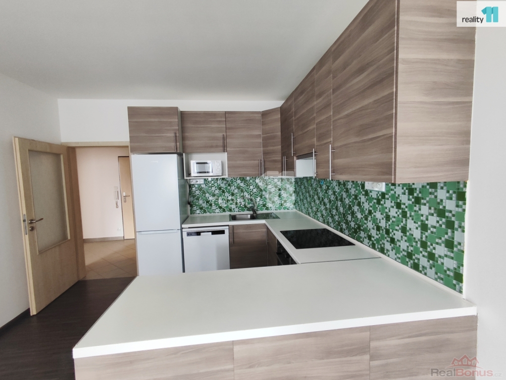 Dominantou bytu je zánovní kuchyňská linka vybavená varnou deskou, troubou, myčkou, novou lednicí s mrazákem a mikrovlnnou troubou vše v moderním stylu, připravené na každodenní vaření i víkendové vaření pro radost.