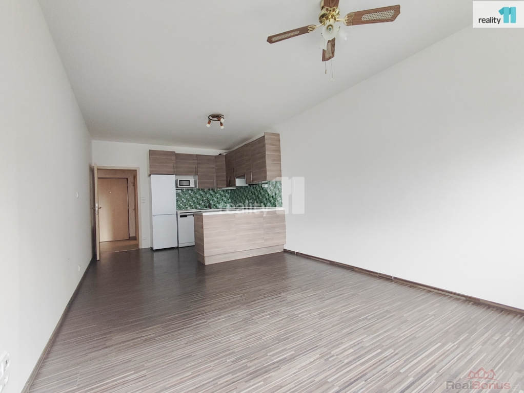 Je nově vymalovaný, čistý a připravený k nastěhování.