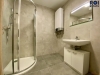 Koupelna je prostorná a moderně řešená, s velkým sprchovým koutem, který působí čistě a komfortně. K bytu navíc patří zděný sklep o velikosti 3 m2, ideální pro úložné prostory.