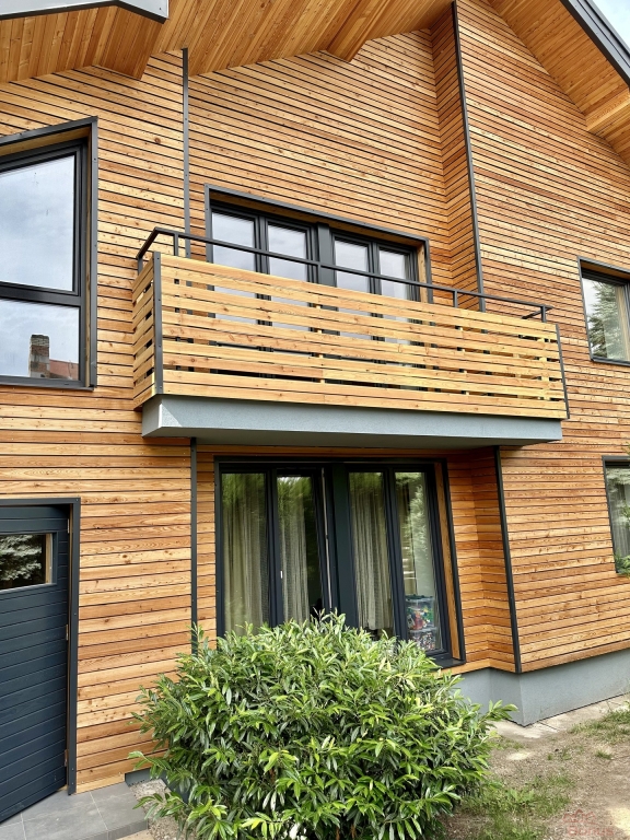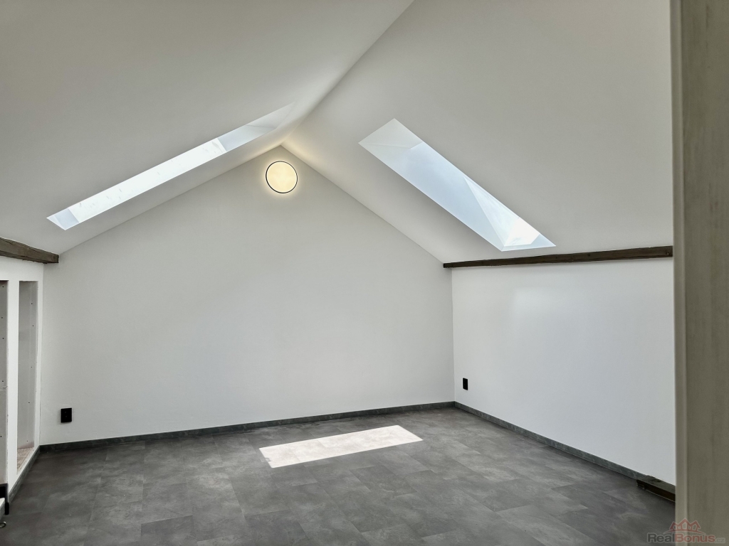 V podkroví jsou další dva pokoje 10 a 20m2 koupelna se sprchovým koutem a toaletou. Do podkrovního patra je přístup po bezpečném, dostatečně prostorném dřevěném schodišti.