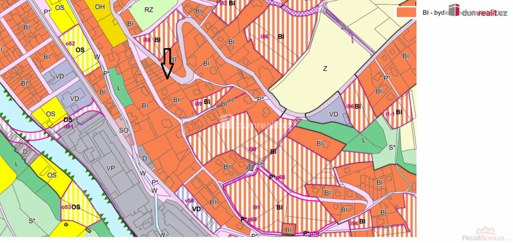 Územním plánem určen k individuálnímu bydlení (výstavba rodinného domu městského typu povolena)