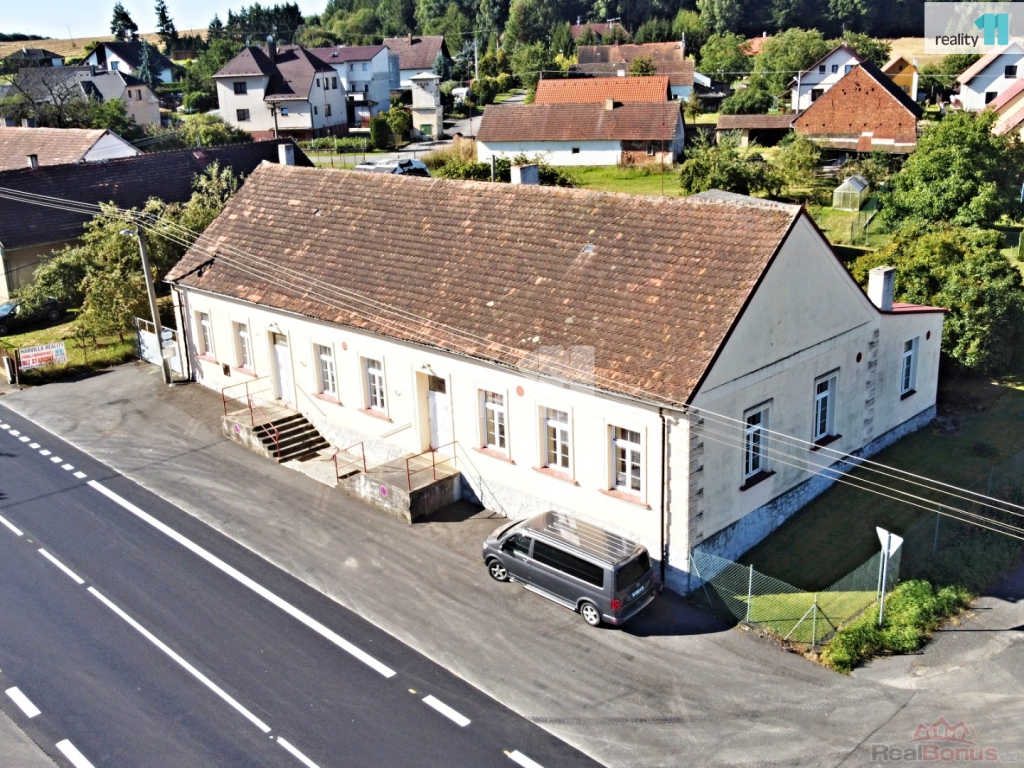 Rozlehlá přízemní podsklepená zděná budova o zastavěné ploše 446 m, původně hostinec se sálem a bytem, dosud využívaný jako prodejna a sklad nábytku s firemním zázemím. Budova má celkem čtyři nezávislé vstupy (dva přímo z ulice), v levé části budovy se nachází původní byt se samostatným vstupem (56 m, tři místnosti, koupelna, WC), využívaný nyní jako kancelářské prostory. V pravé části budovy jsou prostory bývalého hostince s příslušenstvím a velký sál s podiem. Tyto prostory byly dosud využívány k prodeji a skladování nábytku. Celková užitná plocha I. nadzemního podlaží budovy je 345 m. Budova je částečně podsklepená - dva samostatné sklepní prostory o celkové užitné ploše 86 m.