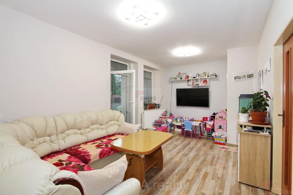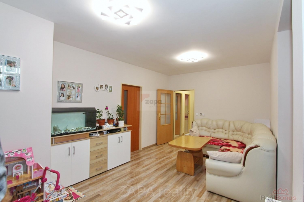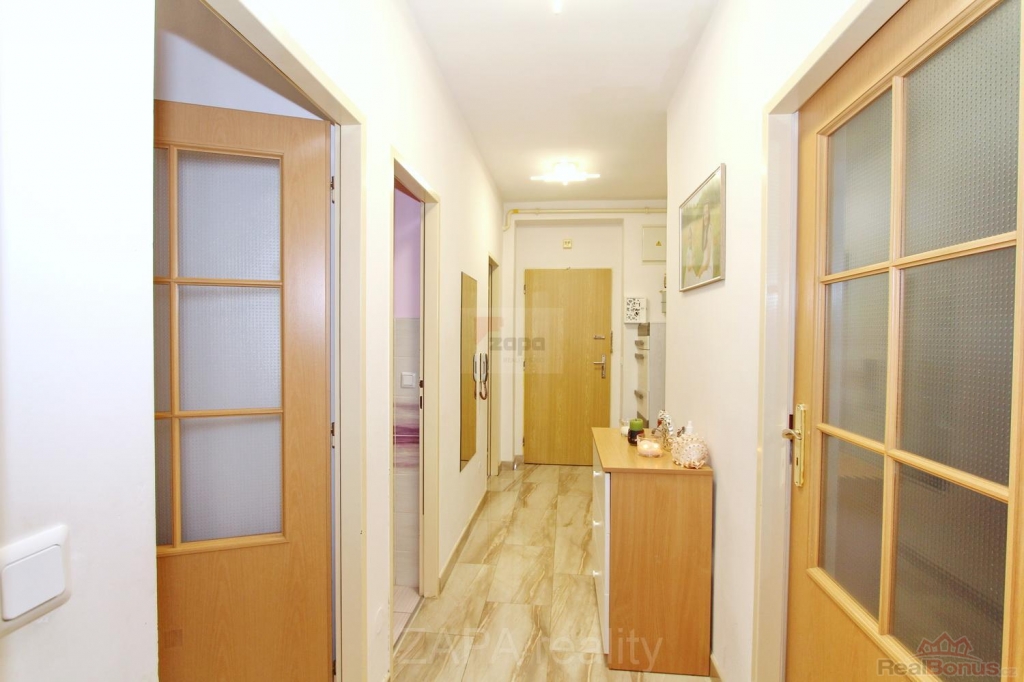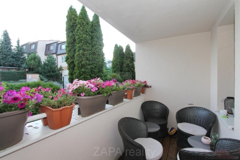 K prostornému bytu o ploše 65 m2 náleží lodžie 7,4 m2 a sklep 3,7 m2.