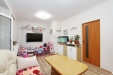 Původní dispozice bytu byla 2+1, nyní je 3+1, když byla postavena příčka v obývacím pokoji.