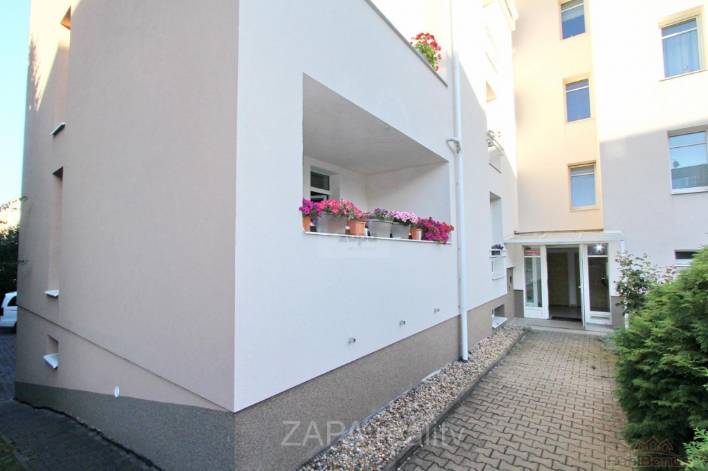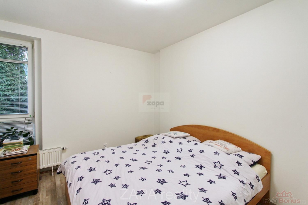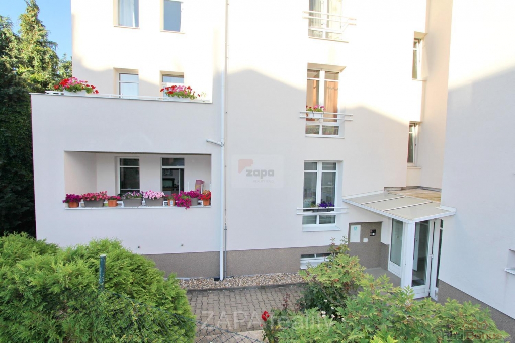 Obývací pokoj s lodžií a jedna ložnice jsou orientovány na západ, do klidné ulice.