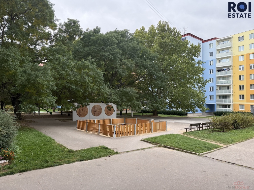 Byt se nachází ve 5. patře panelového domu s výtahem na ulici Strnadova, č. p. 11, v klidné části Líšně.