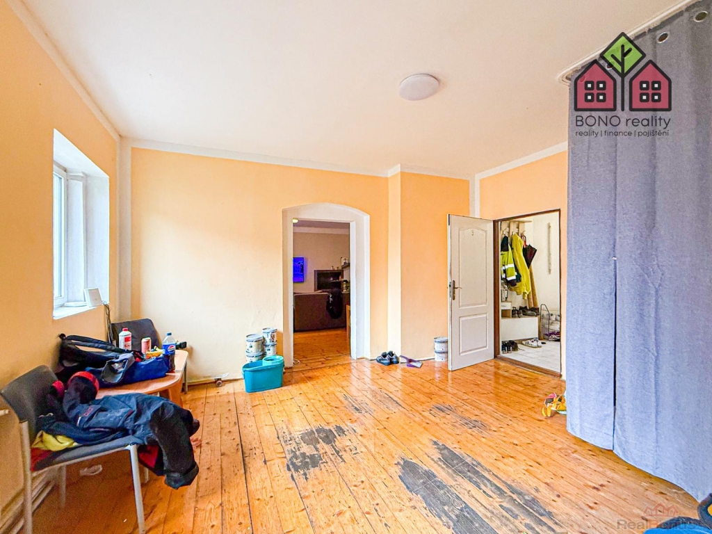 V přízemí domu jsou situované dva byty 1+1 a 3+1, přičemž byt o dispozici 1+1 je dlouhodobě pronajatý stabilnímu a dobrému nájemci. Součástí tohoto podlaží je dále vstupní chodba, úložná a technická místnost, vstup do sklepních prostor, které jsou přibližné výměry 50 m2 a vstup na část pozemku za domem, kde je vybodovaná jakási zahradní kůlna či kryté parkovací stání pro jeden automobil.