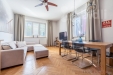 Byt je rozdělen do dvou úrovní. V hlavní části najdete prostorný obývací pokoj s jídelním koutem, samostatnou plně vybavenou kuchyň, jednu ložnici, koupelnu s vanou, sprchovým koutem a toaletou. O patro níže se nacházejí další dva pokoje, které lze využít jako ložnice, pracovny nebo pokoj pro hosty. V obývacím pokoji je krb, který vytváří příjemnou, útulnou atmosféru - ideální pro chladnější večery i odpočinek u ohně.