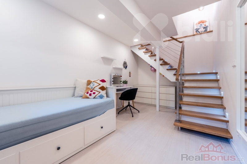 jen pár minut chůze na metro Bořislavka a tramvajovou zastávku Na Pískách, netradiční dispozice se dvěma úrovněmi, která poskytuje soukromí a dostatek prostoru, dvě toalety (jedna v koupelně + samostatná toaleta), klidná rezidenční čtvrť, blízkost parků, obchodů, škol a veškeré občanské vybavenosti, vhodné pro rodinu i kombinaci bydlení a pracovny.