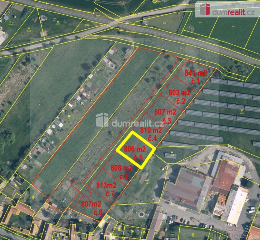 Včetně právního servisu a provize., Nabízíme k možnému prodeji pozemky v obci Velký Borek. Jde celkem o 8 pozemků o velikosti od 803 m po 841 m. K prodeji je také podíl na vzniklé přístupové komunikaci, která není nijak zpevněná.