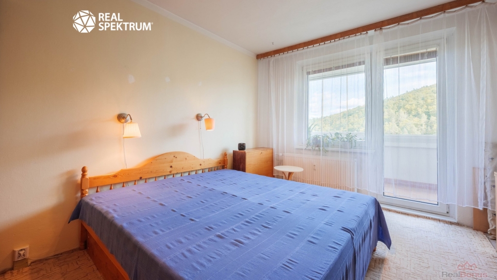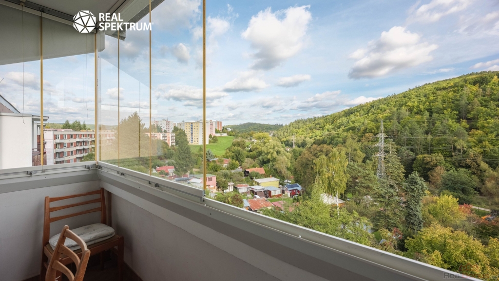 Byt se nachází v nízkopodlažním revitalizovaném domě bez výtahu, který je obklopen zelení a nabízí krásný výhled do zalesněného údolí.