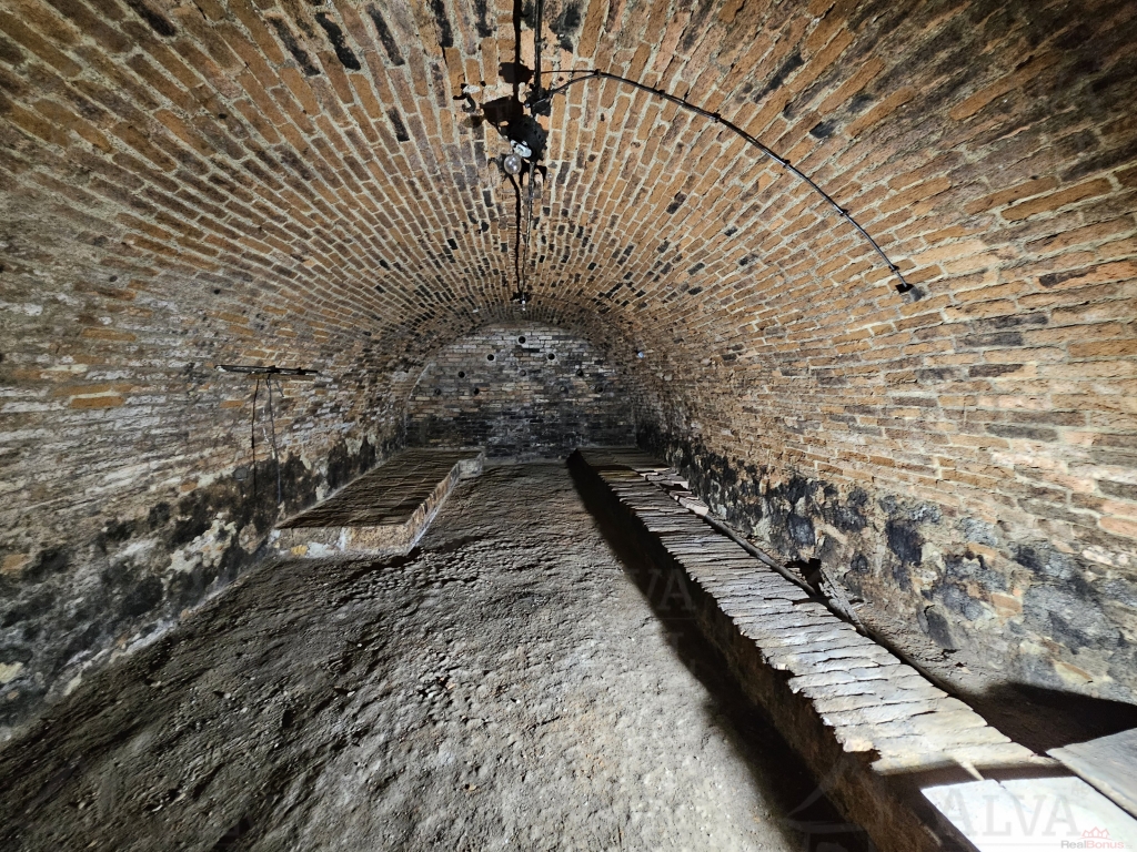 Vstupní místnost ( přípravna ) 25 m?, samotný klenutý sklep má výměru 10 x 4,8 m, výška stropu 2,9 m. K dispozici horní patro, které si nový vlastník přizpůsobí svým potřebám, ať už k následnému krátkodobému pronajímání nemovitosti nebo k vlastnímu využití, možno postavit novou větší budovu.