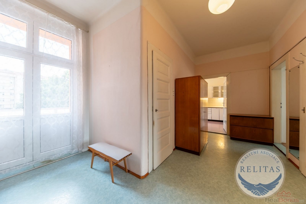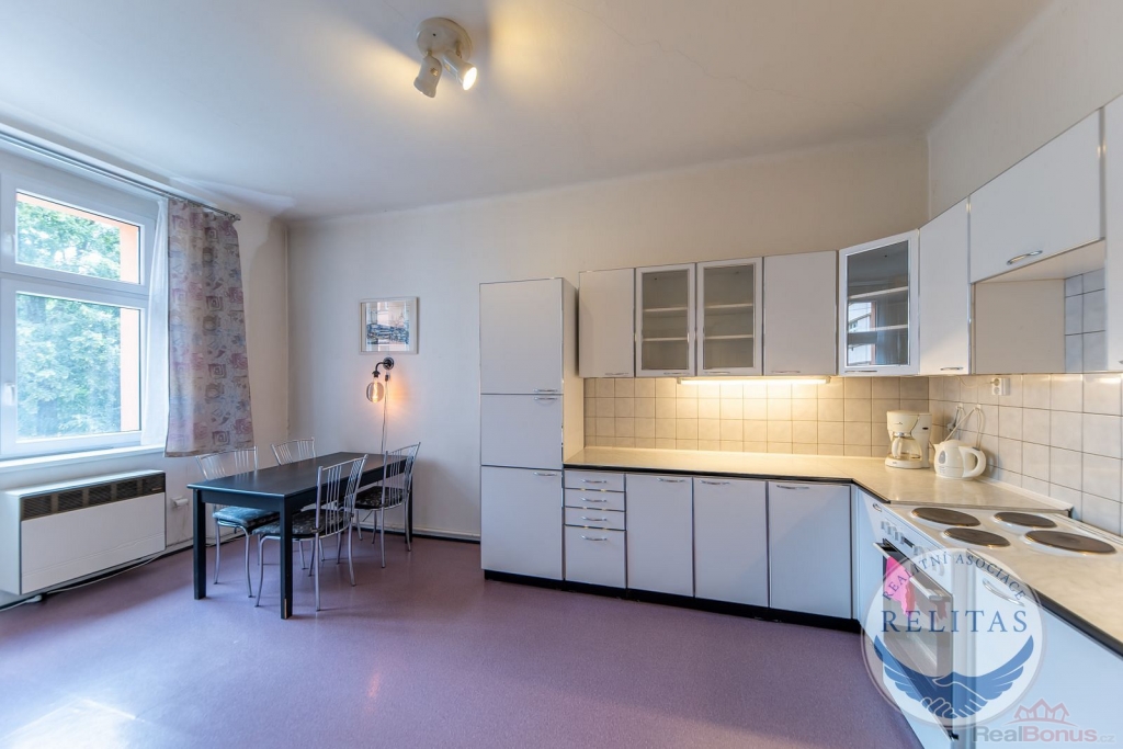 Exkluzivně zprostředkuji pronájem bytu 2+1, 91 m v 2. podlaží cihlové budovy s výtahem v ulici U vody, Praha 7 - Holešovice. Stanice metra =C= Nádraží Holešovice se nachází 10 min chůze. Zastávka tramvaje Ortenovo náměstí 5 min chůze. Byt se sestává ze dvou prostorných neprůchozích pokojů, prostorné kuchyně s jídelním stolem, koupelny s vanou, komory, lodžie a samostatně umístěné toalety (vizte, prosím, půdorys). K bytu náleží i sklepní kóje. Okna pokojů jsou orientována na sever - do parku s výhledem na Vltavu, koupelna, kuchyně a lodžie na jih - do vnitrobloku. Byt je aktuálně bíle vymalován, foto ještě před malbou. Byt se pronajímá částečně zařízený. Vytápěno el. akumulační kamny a v kuchyni plynovým topidlem - vafkami. Ve vnitrobloku je možné využívat společných 5 parkovacích míst náležících celému domu.
