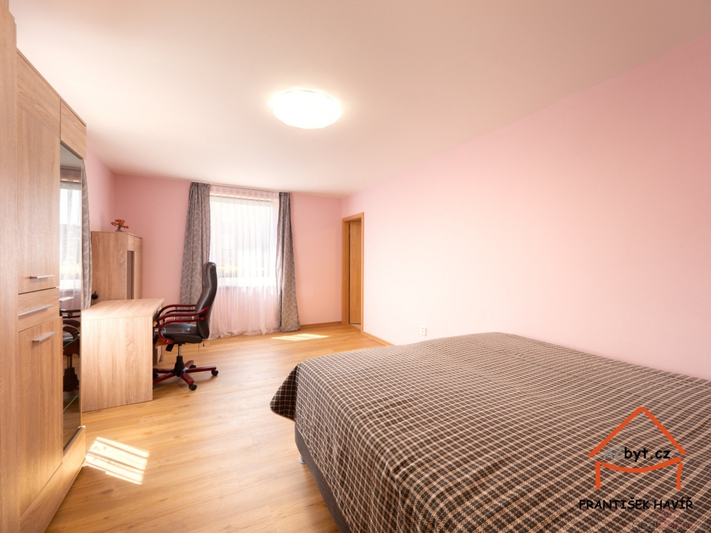 - Ložnice 1 (možnost rozdělení na dvě místnosti): dvě velká okna, šatna, koupelna se sprchovým koutem a WC