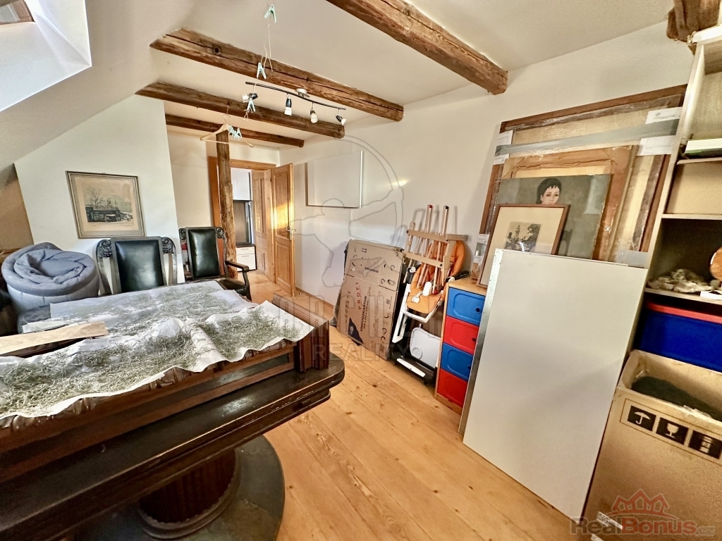 Dům prochází citlivou rekonstrukcí, která bude dokončena původním majitelem tak, aby spojila tradiční charakter starší zástavby s moderním komfortem. Po vstupu vás přivítá světlá chodba s dlažbou v retro stylu, která propojuje všechny části domu praktickou kuchyni, koupelnu s vanou a další obytné místnosti. V podkroví dva pokoje s dřevěnými trámy, ideální pro ložnice, pracovnu, ateliér nebo pokoj pro hosty.