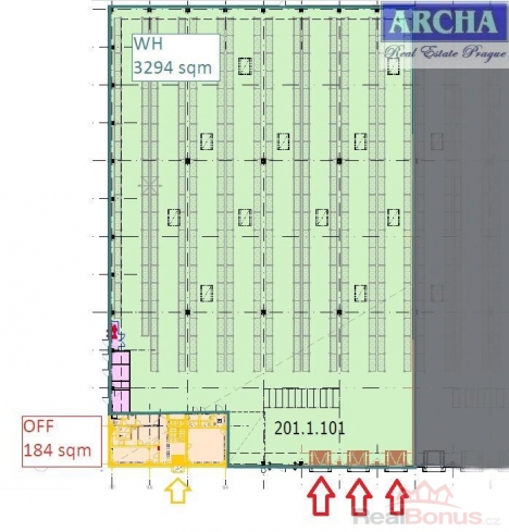 Nabízíme k nájmu volný moderní sklad o výměře 3.294 m2 s kancelářemi v čele skladu o rozloze 194 m2 nedaleko Exitu dálnice D5 (7 minut).