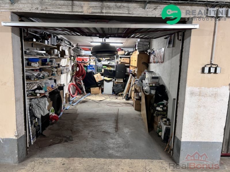 Samostatně uzaviratelná garáž v podzemním podlaží. Dva vjezdy v řadě po obou stranách