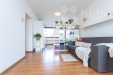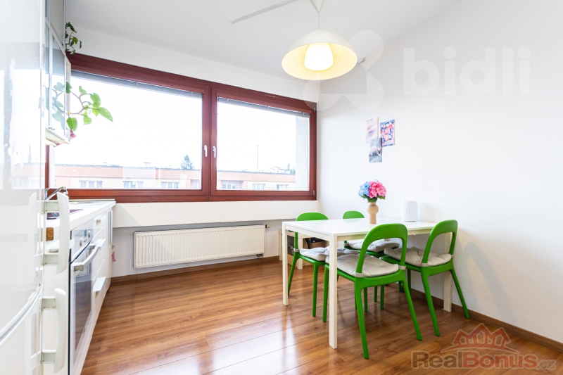 Byt se nachází ve vyšším patře moderního domu s výtahem. Dispozice je prakticky řešená - obývací pokoj s kuchyňským koutem nabízí dostatek prostoru pro posezení, práci i relax. Velká francouzská okna zajišťují dostatek světla po celý den a přímý vstup na terasu, kde si můžete užít ranní kávu nebo klidné večery s výhledem do zeleně i na město. Vybavení je možné zanechat.