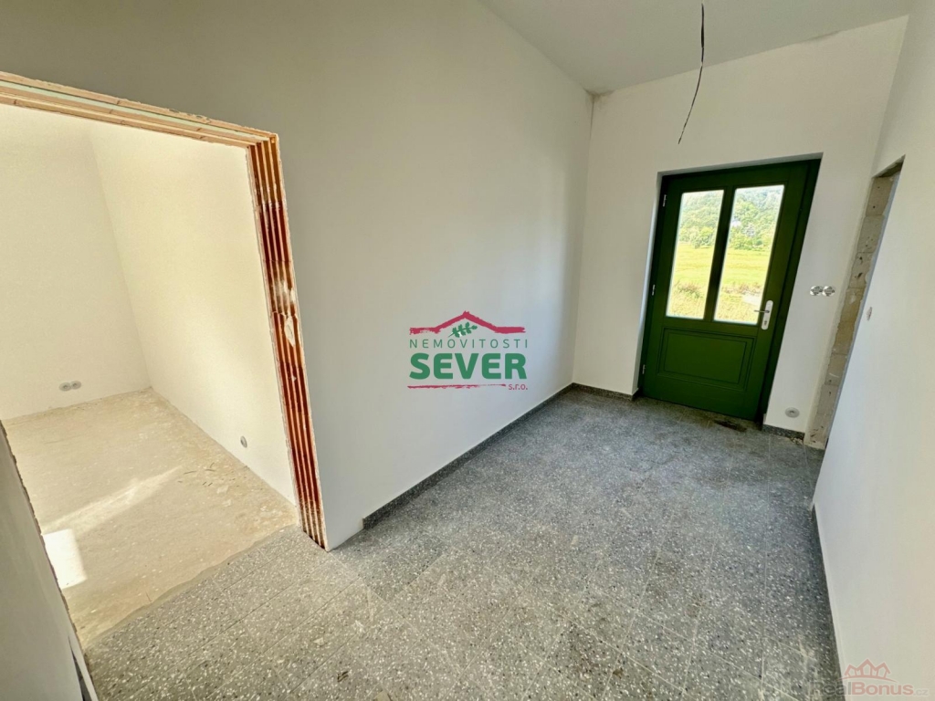 Nemovitosti SEVER vám zprostředkují koupi novostavby rodinného domu s dispozicí 4+kk v Dubí, městské části Běhánky v blízkosti ul. Dlouhá. Rodinný dům s garáží je aktuálně rozestavěný a vhodný k dokončení dle vlastního uvážení. Přízemí domu se skládá z předsíně, technické místnosti, koupelny, pokoje, obývacího pokoje s přípravou pro kuchyňský kout, prostoru pod schody a vstupu do patra. Patro domu se skládá ze dvou pokojů, koupelny a vstupu na prostornou terasu, kde je zhotovena hydroizolace a oplechování. Koupelna v přízemí domu disponuje sprchovým koutem, vanou a toaletou. Koupelna v patře domu disponuje sprchovým koutem a toaletou. V celém domě je rozvedena elektřina, voda, odpad a podlahové vytápění, které je potřeba připojit na elektrokotel (není k dispozici). V domě jsou veškerá eurookna od firmy Okna Švácha, garáž je vybavena dálkově ovládanými sekčními vraty značky Hörmann. Rodinný dům je připojen na vodovodní řád a veřejnou kanalizaci. K domu náleží rovinatý, neoplocený pozemek s výměrou zhruba 680 metrů čtverečních. Dům je situovaný v malebném prostředí při úpatí Krušných hor. Veškerou občanskou vybavenost (obchod, lékař, škola, mateřská škola, autobusová zastávka) nalezneme přímo v obci. Centrum statutárního města Teplice je vzdálené zhruba 7 minut jízdy automobilem od domu. V případě zájmu zajistíme optimální variantu financování na tuto nemovitost za zvýhodněných podmínek pro naše klienty.