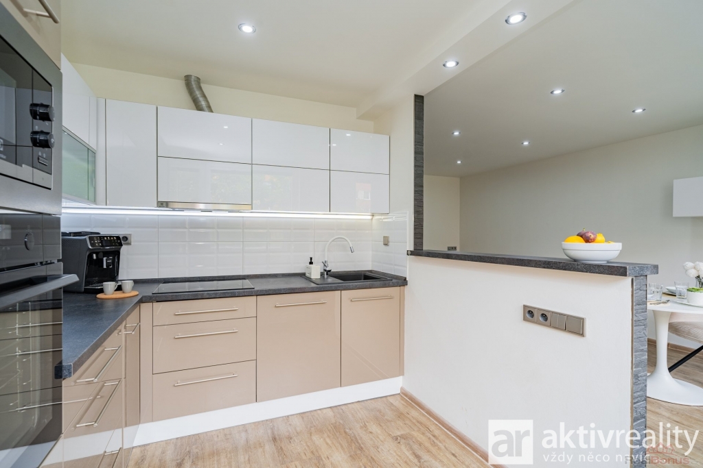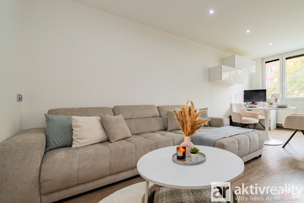 Prodej družstevního bytu 3+1 po kompletní rekonstrukci z roku 2021 ve 3. patře panelového domu po revitalizaci s výtahem v Mělníku. Podrobné informace najdete na webu viz video. Návrh interiéru vycházel z práce architekta, realizace proběhla profesionálně majitelem. Byt je čistý, funkční a připravený k okamžitému užívání bez dalších investic. Obývací pokoj je propojený s kuchyní a oddělený nízkým barovým pultem. Kuchyně do L nabízí dlouhou pracovní plochu, dostatek skříněk a moderní vestavné spotřebiče, navazuje jídelní část a plnohodnotný obývák. Ložnice má přímý vstup do šatny, druhý pokoj slouží jako dětský/pracovna. Předsíň zůstala prostorná a díky vestavným skříním přidává úložné místo. Koupelna je ?tak akorát? na velký sprchový kout, dvojumyvadlo, místo pro pračku i sušičku. Toaleta je samostatná s bidetovou sprškou a malým umyvadlem. Rekonstrukce zahrnovala nové příčky, kompletní elektro a rozvody, srovnání obvodových stěn sádrokartonem (lepší vzhled i akustika), lepený vinyl v obytných místnostech a odhlučnění stěny za kuchyní. Převládají posuvné dveře do pouzder, vstupní dveře jsou bezpečnostní a protipožární. Orientace: obývák s kuchyní jihozápad, ložnice a druhý pokoj severovýchod. K bytu náleží komora naproti dveřím bytu na patře a sklepní kóje. Parkování u domu a na větší ploše naproti přes Bezručovu. V pěší vzdálenosti Kaufland, Tesco, centrum, MHD/linkové autobusy, školy, školky a sportoviště. Podrobné informace najdete na webu viz video.