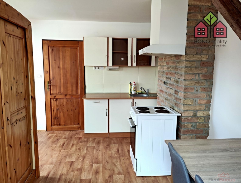 Realitní kancelář Vám nabízí k dlouhodobému pronájmu atypickou bytovou jednotku v osobním vlastnictví, o dispozici 1+kk s příslušenstvím, a to v Litoměřicích, v ulici Palachova. Bytová jednotka má užitnou plochu o výměře 44,83 m2 a je situována ve 3. podlaží udržovaného cihlového domu bez výtahu. Bytový dům se pak nachází v nejlukrativnější ulici v Litoměřicích, téměř v centru města s dosahem veškerých služeb, ale i vlakového či autobusového nádraží, včetně městského parku Jiráskovy sady. V bytě je k dispozici linka s elektrickým sporákem a digestoří, jídelní stůl se židlemi, pohovka se stolkem, šatní skříň, manželské dvoulůžko a věšáková sestava v chodbě. Koupelna je zděná s keramickým obkladem, rohovou vanou, toaletní skříňkou s umyvadlem a zrcadlem a společnou toaletou. Okna jsou dřevěná Euro okna a na podlaze je položena dlažba nebo plovoucí podlahy. Vytápění bytu a ohřev teplé vody zajišťuje plynový kotel s podružným měřičem spotřeby, umístěný v uzavřeném společném prostoru před bytem. Alternativou je nově nainstalovaná klimatizace. Podružný elektroměr má pak také měření spotřeby elektrické energie. K bytu nenáleží žádná sklepní kóje či jiné úložné prostory. Měsíční nájemné činí částku 9.500,-Kč a dále je nutné hradit měsíční zálohy za elektrickou energii ve výši 1.000,-Kč, plyn ve výši 1.500,-Kč a vodné a stočné ve výši 1.000,-Kč. Měsíční poplatky, spojené s užíváním této bytové jednotky, pak činí celkem 13.000,-Kč. Internetové připojení je zdarma. Vratná kauce činí částku 20.000,-Kč. Byt je k nastěhování dle dohody. Podkrovní bytová jednotka s přiznaným trámovým, které navazuje pocit velmi útulného domova, je určena pro jednu osobu (max. dvě dospělé osoby) a vzhledem k výměře a dispozici bytu pak bez domácích zvířat. Byt je nekuřácký. Podmínkou je také doložení pracovní smlouvy nebo jiného zdroje vlastních příjmů (OSVČ). Provize realitní kanceláře činí částku 13.000,-Kč. Pro více informací a sjednání prohlídky bytu volejte realitního makléře.
