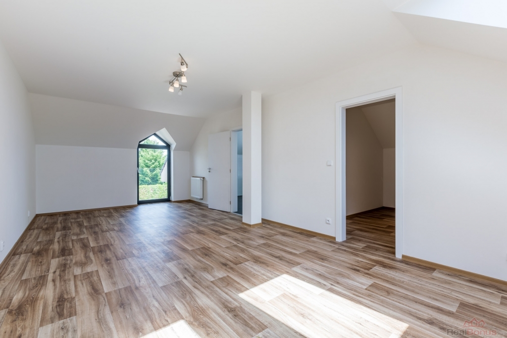 V 2.NP se nachází velká ložnice s šatnou a prostornou koupelnou se sprchovým koutem, vanou a toaletou a ještě s dalším prostorem, např. pro saunu. Dále je zde pracovna, dva pokoje, druhá koupelna s vanou a toaletou. Součástí domu jsou dvě prostorné půdy.