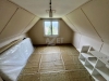 V podkrovní části jsou dva pokoje. Nemovitost má přípojku elektřiny a o ohřev vody se stará elektrický bojler.