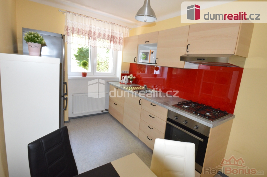 +zálohy na vodu, elektřinu a plyn, které bude mít nájemník sám na sebe. , Dumrealit.cz Vám zprostředkuje pronájem bytu 2+1 v ul. Terezínská v Lovosicích. Byt je po kompletní rekonstrukci a pronajímá se včetně vybavení. Nachází se ve zvýšeném přízemí cihlového domu. Topení a ohřev vody je na plynový kotel. Kuchyň je vybavená kuchyňskou linkou, lednicí a jídelním koutem. V koupelně je sprchový kout a pračka. Na podlahách je linoleum a renovované parkety. Dům je po rekonstrukci a zateplen. Majitel požaduje kauci ve výši 25.000,- Kč. Zálohy na elektřinu a plyn, bude mít nájemník sám na sebe. Nájem se platí na měsíc dopředu. Každá místnost má svůj samostatný vstup. Vhodné pro 2 max. 3 osoby. V případě zájmu o prohlídku kontaktujte makléřku nemovitosti. Byt je volný, ihned k nastěhování. Možnost dlouhodobého pronájmu. Ev. číslo: 625685. Energetický štítek: G