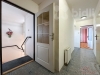 Z prostorné chodby vede ocelové schodiště do patra, kde je další samostatná bytová jednotka s kuchyní, koupelnou a oddělenou toaletou.