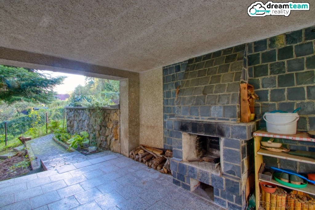 Ze suterénu vyjdete přímo na zastřešenou terasu s venkovním krbem. Tady vydržíte, dokud máte co jíst a o čem povídat. Začnete ranní kávou, v poledne ugrilujete luxusní krkovičku a večer budete stmelovat rodinu u buřtů a kytary. Ani déšť Vás nevyruší, protože jste pod střechou. Tohle místo má tak úchvatnou energii plnou klidu, že tu budou vznikat ty nejlepší vzpomínky.