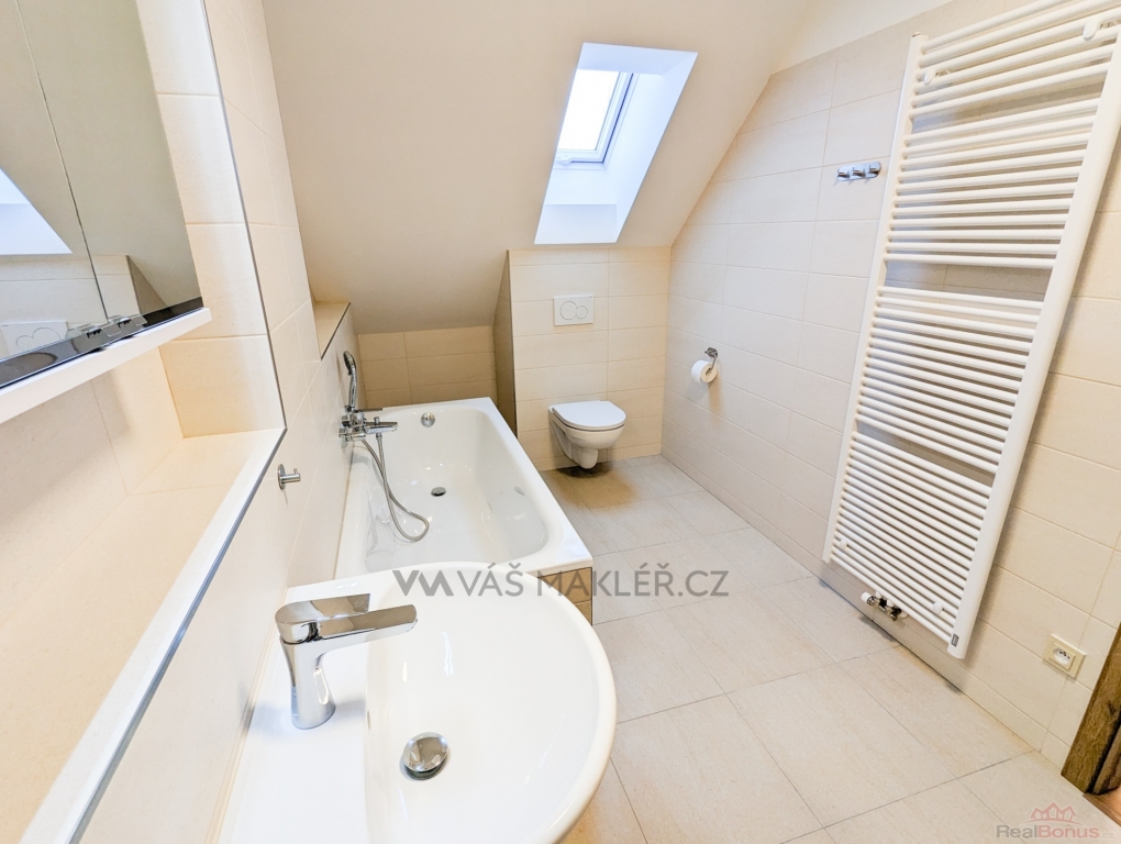 Nabízím Vám bydlení v novém bytě 2+kk (54 m2), po kompletní rekonstrukci v malém obytném domě. Byt má přednosti podkrovního bytu a současně si zachovává využití vnitřního prostoru jako normální byt.