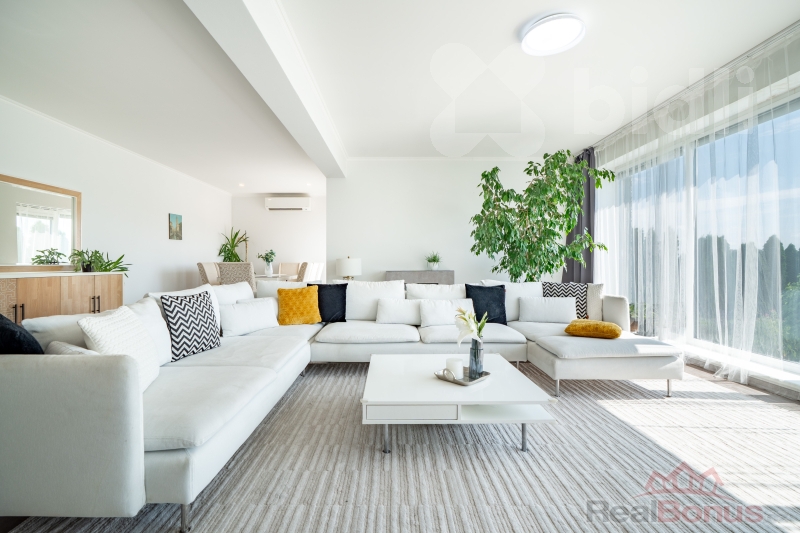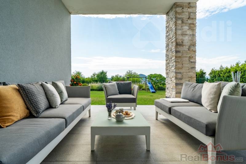 Tento mimořádně prostorný dům uspokojí i ty nejnáročnější zájemce. Nabízí komfort, přirozené světlo a naprosté soukromí pro každého člena rodiny. Architektonicky promyšlená dispozice harmonicky propojuje velkorysý společenský prostor s kuchyní v přízemí a klidovou zónu v patře, kde se nachází ložnice se šatnou, koupelna a další obývací pokoj s přímým vstupem na terasy.
