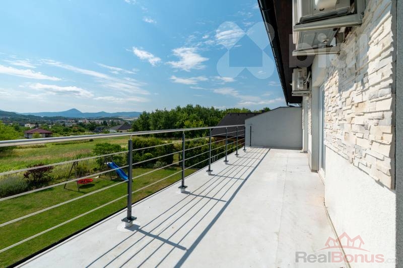 Celkem dům disponuje pěti ložnicemi, třemi koupelnami, dvěma šatnami, technickou místností a dvěma prostornými terasami s výhledem do okolí.