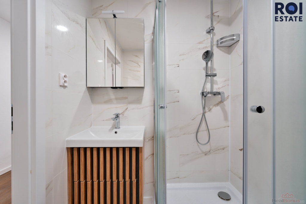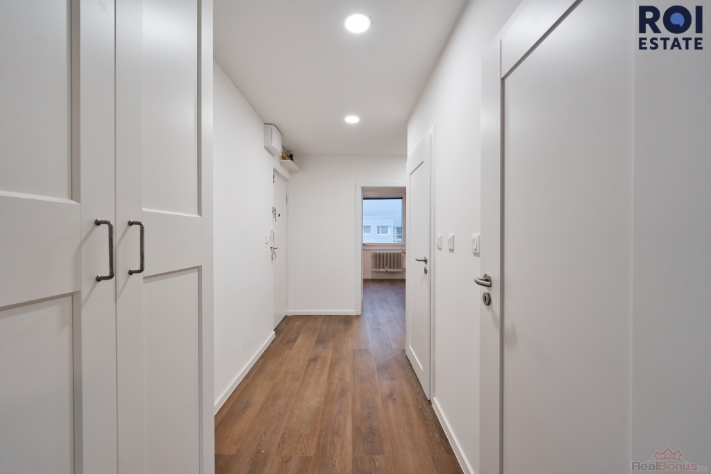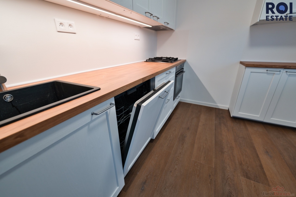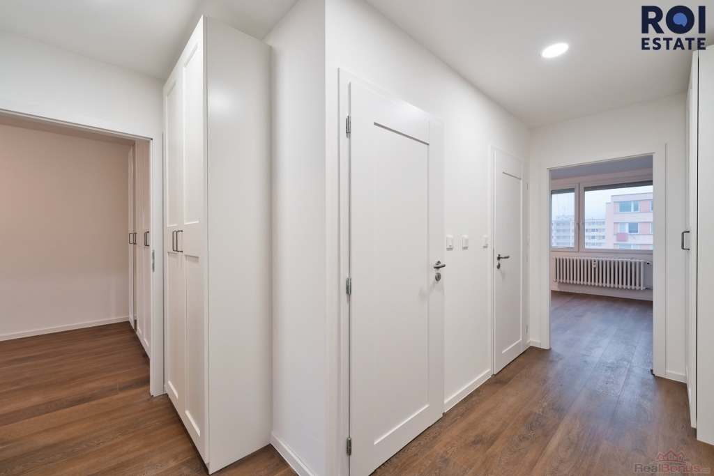 Byt je čistý, částečně zařízený ? k dispozici kuchyňská linka se spotřebiči (myčka, trouba, sporák, lednice), vestavěné skříně a dostatek úložného prostoru. Výhodou v obývacím pokoji jsou venkovní rolety.