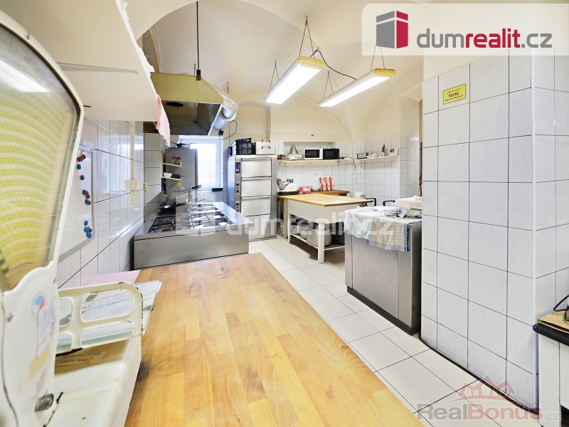 , Možný prodej bytového domu s nebytovým prostorem, restaurací. V současné době je hotových 5 bytových jednotek, z toho 4 jsou zkolaudované. Zbývá dokončit dvě jednotky. Každá jednotka má vlastní elektroměr, elektrokotel na topení a el. bojler na ohřev teplé vody. Jednotka č. 1 nabízí 72,6 m včetně sklepa, jednotka č. 2  restaurace činí 203 m, jednotka č. 3 celkem 124,9 m včetně sklepa o velikosti 46,85 m, tento sklep je používán jako soukromý prostor - bar, jednotka č. 4, rozestavěná nabízí 60,4 m. Jednotka č. 5, nedokončená 274,7m, jednotka č. 6 nabízí 46,97m, jednotka č. 7  69,35m, jednotka č. 8 - 17,95 m. Dvůr u domu, přístupný přes průjezd o velikosti cca 300 m umožňuje parkování vozidel v zastřešeném stání a zastřešené posezení. V průjezdu je pak vstup do soukromého prostoru  baru.