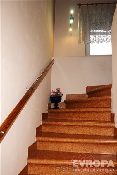 Vstup do domu přes chodbu, vpravo prostorná komora, vlevo umývárna, samostatné WC, zděný sprchový kout. Vstup přes kuchyň do obývacího pokoje s krbovými kamny a prosklenými dveřmi na terasu. Z pokoje rovněž vstup do ložnice ložnice. Ve druhém patře jsou k dispozici tři samostatné pokoje.