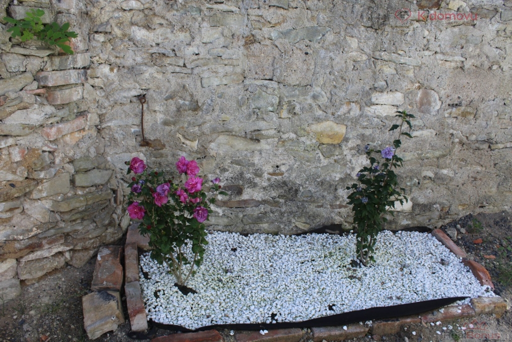 Ze dvora, na kterém je pohodlné parkování i prostor pro posezení a menší bazén, jsou vstupy do tří klenutých sklepů zasazených do svahu za domem. Svah je zabezpečen masivní opěrnou zdí a je v něm zbudována zatím jedna terasa. Má ale mnohem větší potenciál, který lze v budoucnu využít.