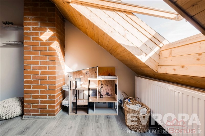 Vytápění je řešené kombinovaným plynovým kotlem s ohřevem vody. V obývacím pokoji je moderní krbová vložka s pomalým hořením a horkovzdušným rozvodem do domu. V místnostech jsou umístěna topná tělesa a v koupelně je podlahové vytápění a elektrický žebřík. Do domu je přivedena obecní voda a ...