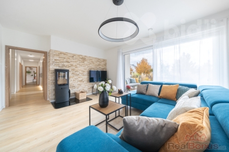 Dispoziční řešení je 5+kk s podlahovou plochou 173 m2, zastavěná plocha je 222 m2. Všechny ložnice mají vlastní výstup do zahrady a disponují vlastní šatnou. V hlavní ložnici se nachází soukromá koupelna s WC a vanou. Dále v domě naleznete prostorný obývací pokoj s krbovými kamny a moderní kuchyňskou linkou s jídelní částí. Kuchyňská linka je řešená velice nadstandardně, má například 2 vestavěné myčky a 2 mrazáky. Dům dále disponuje pracovnou, další koupelnou s WC a sprchovým koutem, samostatným WC v předsíni a technickou místností.
