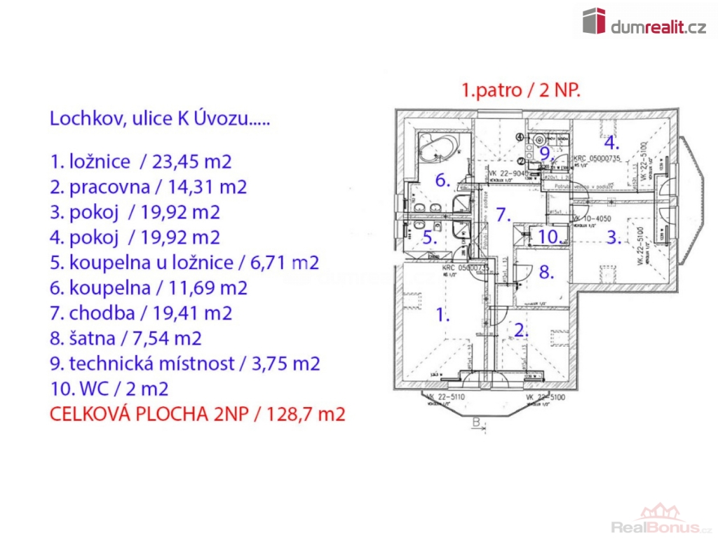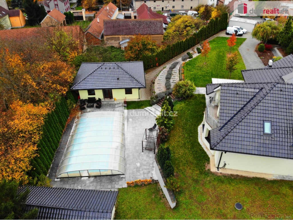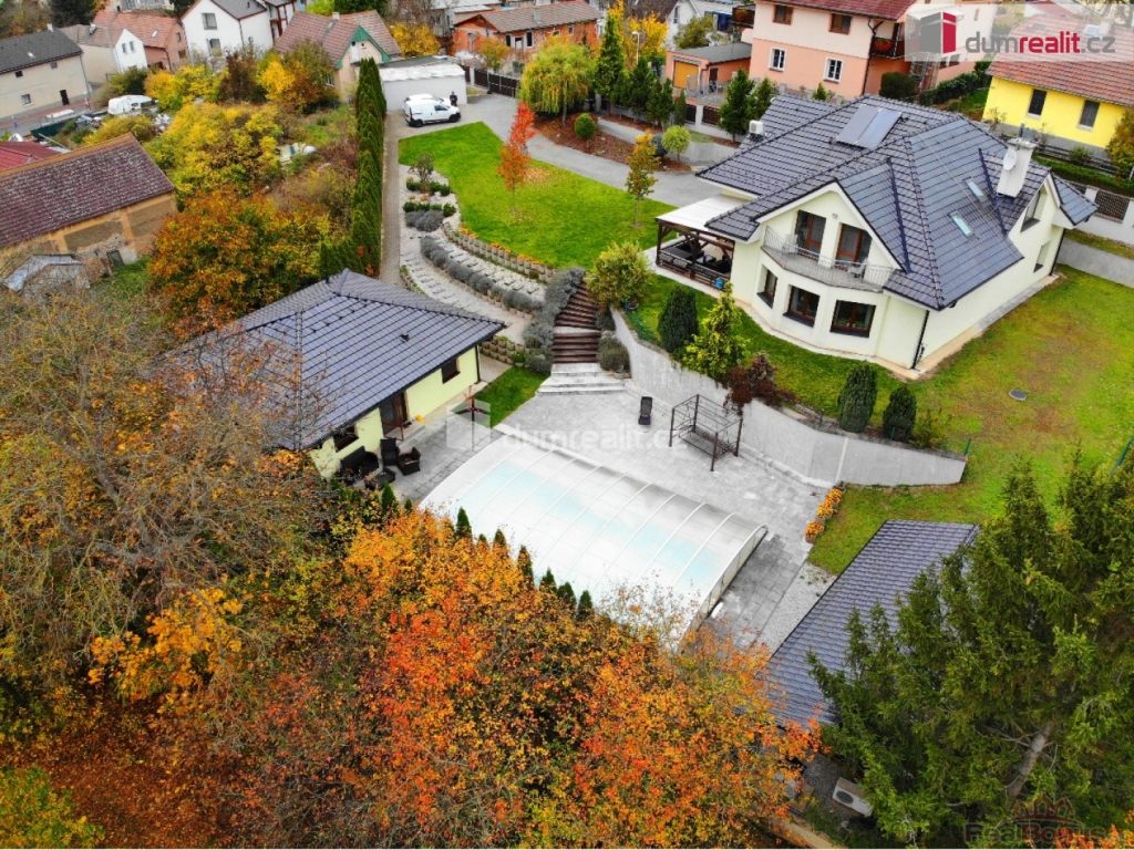 cena je vč. odměny RK, Hledáte prostorný rodinný dům v Praze, ideálně dvougenerační s dalším zkolaudovaným domem na zahradě? Mám zde pro vás exkluzivní nabídku rodinného domu z roku 2009, v ulici K Úvozu, Praha 5 Lochkov a dalším domem 3+kk, který je nově zkolaudován a má číslo popisné (3+kk). Tento moderní dům s dispozicí 6+kk a dvougaráží, s pozemkem o velikosti 1868 m, se zděným, samostatným domkem s dispozicí 3+kk (62 m) vhodným pro návštěvy, rodiče či na podnikání, s velkým, krytým bazénem (10 x 5 x 1,5 hloubka), garáží pro motorky či další auto (22 m), zahradním domkem (9 m) s technikou pro bazén a s velkou střešní pergolou. Tato nemovitost nabízí vše, co hledáte od svého budoucího bydlení. Hlavní dominantou zahrady je zděný dům z roku 2009 s dispozicí 6+kk, kterou v přízemí tvoří: prostorný obývací pokoj spojený s kuchyňským koutem a krbem, se vstupem na zastřešenou terasu s jihozápadní orientací, se vstupem do zimní zahrady a vstupem na zahradu, dále je v přízemí centrální chodba se zádveřím, sklad potravin pod schodištěm, koupelna s WC, pracovna / pokoj pro návštěvy. Po schodišti se dostaneme do 1.patra / 2 NP, kde je umístěná velká ložnice se vstupem do vlastní koupelna s WC, se vstupem na balkon a výhledem do zahrady, dále ložnice (nyní fitness) také se vstupem na balkon, šatna, centrální velká koupelna s vanou a sprchou, 2 x umyvadlem, samostatné WC, kotelna s plynovým kotlem a prostorem na pračku a sušičku a 2 x identický dětský pokoj se vstupem na společný balkon. Topení domu zajištuje centrální plynový kotel se zásobníkem na vodu, ohřev vody v letních měsících zajištují dva solární panely na ohřev vody na střeše. Na pozemku je dále umístěn plnohodnotný nově zkolaudovaný domek s dispozicí 3+kk (62 m), s vlastním pozemkem 837 m, sítěmi a přístupem. Přímo u bazénu s prostorem na lehátka, trampolínu atd.. dále zahradní domek s krytým posezením a zděná garáží vjezdu na pozemek. Parkování je plnohodnotné, v domě 6+kk je dvojgaráž, další 2-4 auta mohou parkovat před garáží, dvě auta pak u vjezdu na zahradu a další auto / motorky pak do zděná garáže. Jak dům 6+kk, tak i domek 3+kk mají vlastní elektroměr vč. kapličky, vlastní vodovod, odpady do kanalizace (zahradní domek má čerpadlo do tlakové kanalizace). Menší domek 3+kk je aktuálně také vytápěn vlastním plynovým kotlem a je zcela nezávislý na domě 6+kk. Tato nemovitost je v osobním vlastnictví, lze ji financovat hypotečním úvěrem, je v TOP stavu a připravena dle dohody k nastěhování. V ceně domu a domku jsou kuchyně + spotřebiče, vestavěné skříně a osvětlení, ostatní dle dohody více info v RK. V okolí domu je absolutní klid, zastávka MHD (bus č. 120 Lochkov je 2 minuty od domu, potraviny také do 5 minut pěšky. Kompletní prezentace s více foto je na našem webu. Ev. číslo: 649217. Energetický štítek: C (98 kWh/m2/rok).
