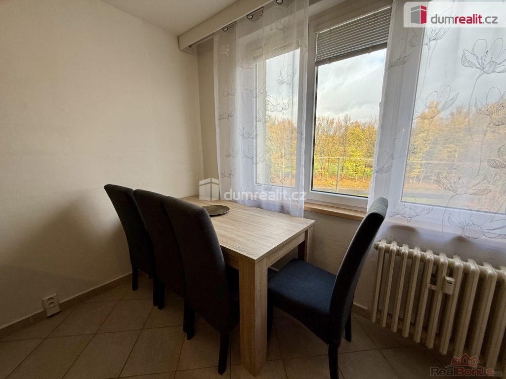 Koupelna má zděné jádro. Byt se nabízí včetně interiérového vybavení, viz. fotodokumentace.
