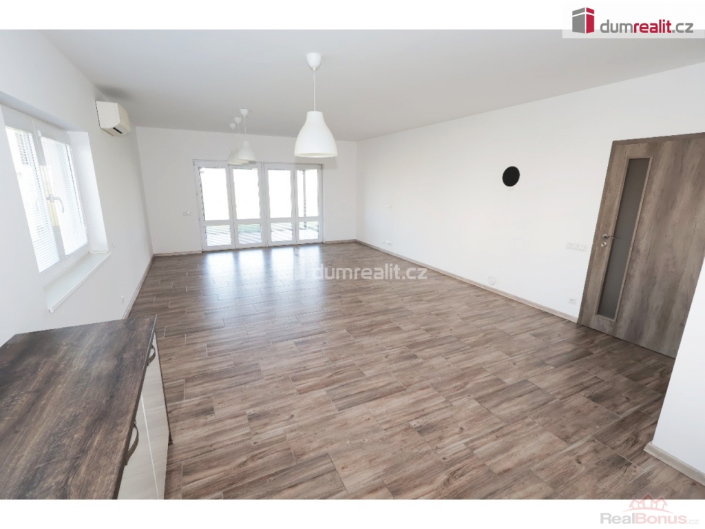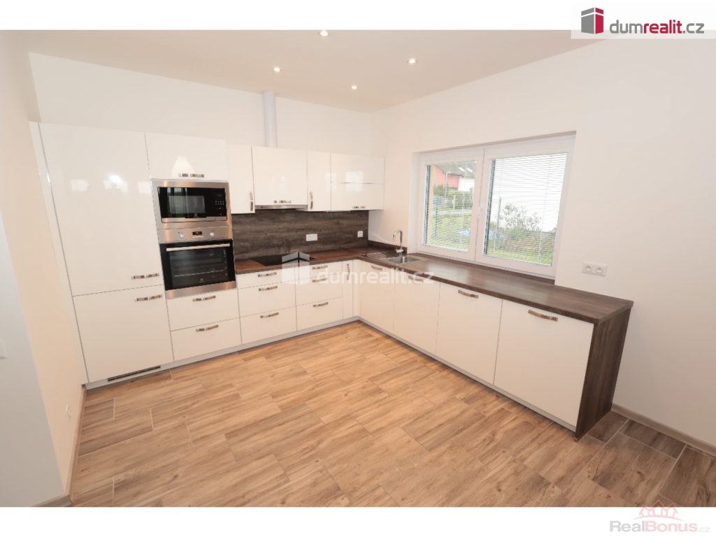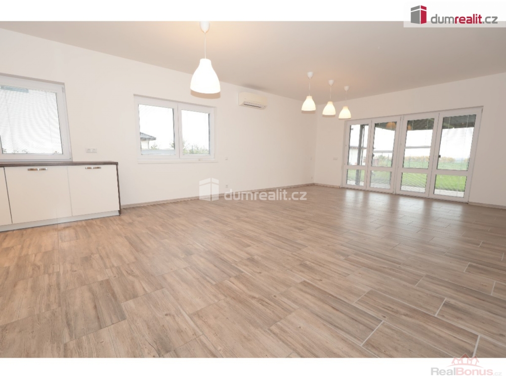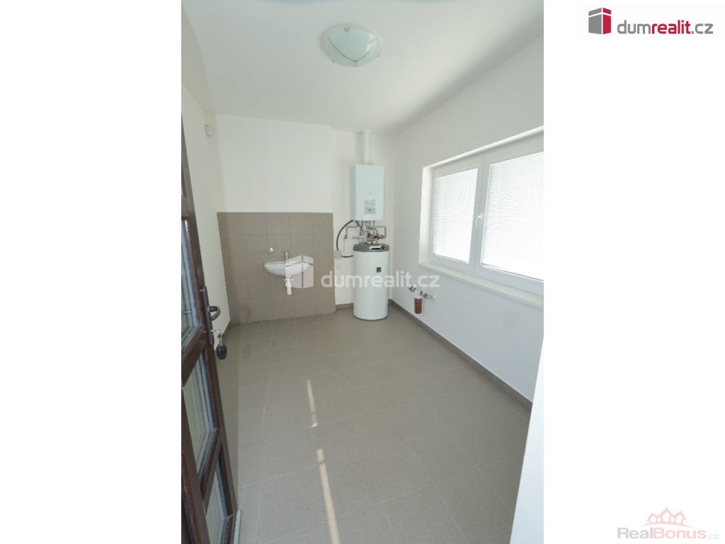 záloha na vodu 1500 Kč, elektroměr a plynoměr se hlásí na nájemce, Dumrealit.cz Vám zprostředkuje exkluzivně pronájem nízkoenergetické, bezbariérové novostavby domu (2018 top stav) s dispozicí 4+kk, 152,40 m + 8 m krytá terasa, v obci Sibřina, nedaleko městyse Říčany, 3 km od Prahy. Dům je volný od listipadu, prohlídky jsou již monžné, aktuálně se maluje a připravuje pro nového nájemce. Plocha pozemku je 1143 m, zastavěná plocha je 200 m, zahrada má 943 m. Dispozici domu 4+kk (152,40 m) s garáží (20 m) tvoří prostorný obývací pokoj (40,9 m) s možností instalace krbových kamen, prakticky spojený s kuchyňským koutem, který je vybavený luxusní zakázkovou kuchyňskou linkou se spotřebiči (myčka 60, indukční deska, digestoř a vestavěná el. trouba a vestavěná mikrovlnka). Kuchyňský kout má praktickou komoru/špajz (1,93 m). Z obývacího pokoje je vstup přes francouzské dveře na zastřešenou terasu (8 m) a na zahradu (943 m). Další místnost domu 4+kk (152,4 m) tvoří: ložnice (15,76 m), dětský pokoj (14,48 m) a pokoj (13,88 m), centrální koupelna (9,84 m) s vanou, umyvadlem, toaletou, bidetem, sprchovým koutem a oknem. Dále jsou v domě: komora / technická místnost (4,43 m), toaleta (2,40 m), velká interiérová chodba (14,12 m), zádveří (6,46 m), samostatný sklad (8,20 m), který má přístup ze zahrady a je zde umístěn plynový kotel, a velká garáž pro 1 auto (20 m) se vstupem do domu. V celém domě je podlahové/teplovodní vytápění pomocí plynového kotle a klimatizace. Konstrukce domu je z materiálu Ytong. Na podlaze ve 2/3 domu je praktická dlažba, ostatní pak plovoucí podlahy. Vjezd do garáže je ovládán elektronicky. Tento dům je volný od listopadu, je v osobním vlastnictví, elektroměr a plynoměr se hlásí na nájemce. Zvíře se řeší individuálně. Na zahradě je 4 m3 nádoba na dešťovou vodu zalévání. Internet pomocí místní WIFI, dům má vlastní alarm. Majitel garantuje stabilní dlouhodobý pronájem, aktuální nájemce se stěhuje na vlastní žádost po 3 letech. Dům pronajímáme od roku 2018. Velmi doporučuji všem, kteří hledají bungalov s velkou zahradou a garáží. Ev. číslo: 652493. Energetický štítek: B (167 kWh/m2/rok).