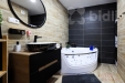 Vpravo se nachází samostatné WC a velkorysá koupelna s vířivkou, místem pro pračku i sušičku.