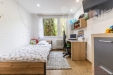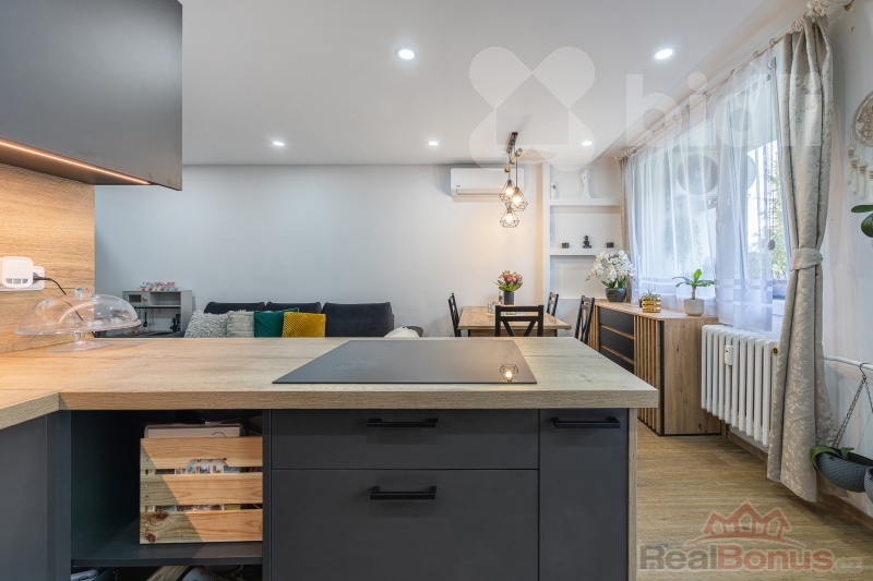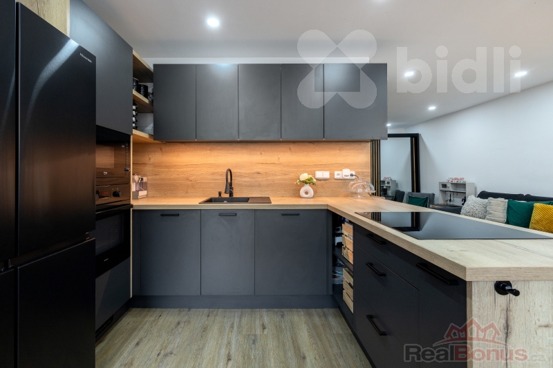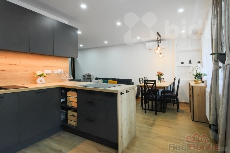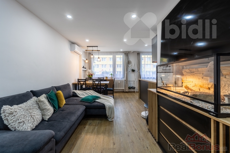 Byly provedeny nové rozvody elektřiny i vody, položeny nové podlahy, instalována klimatizace, kuchyňská linka se spotřebiči, nové dveře, koupelna i WC. Dispozice byla upravena tak, aby byt působil vzdušně, moderně a maximálně funkčně.