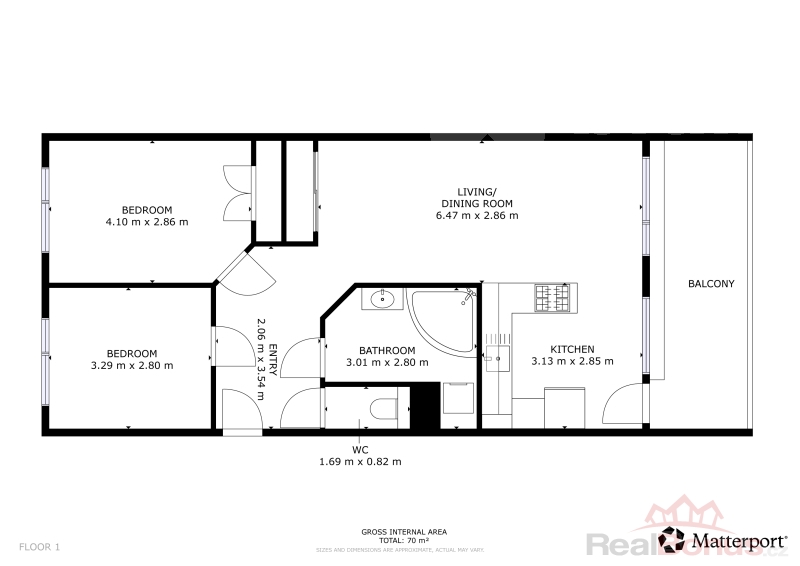 Po vstupu do bytu vás přivítá prostorná chodba, z níž je vlevo vstup do dvou neprůchozích pokojů.